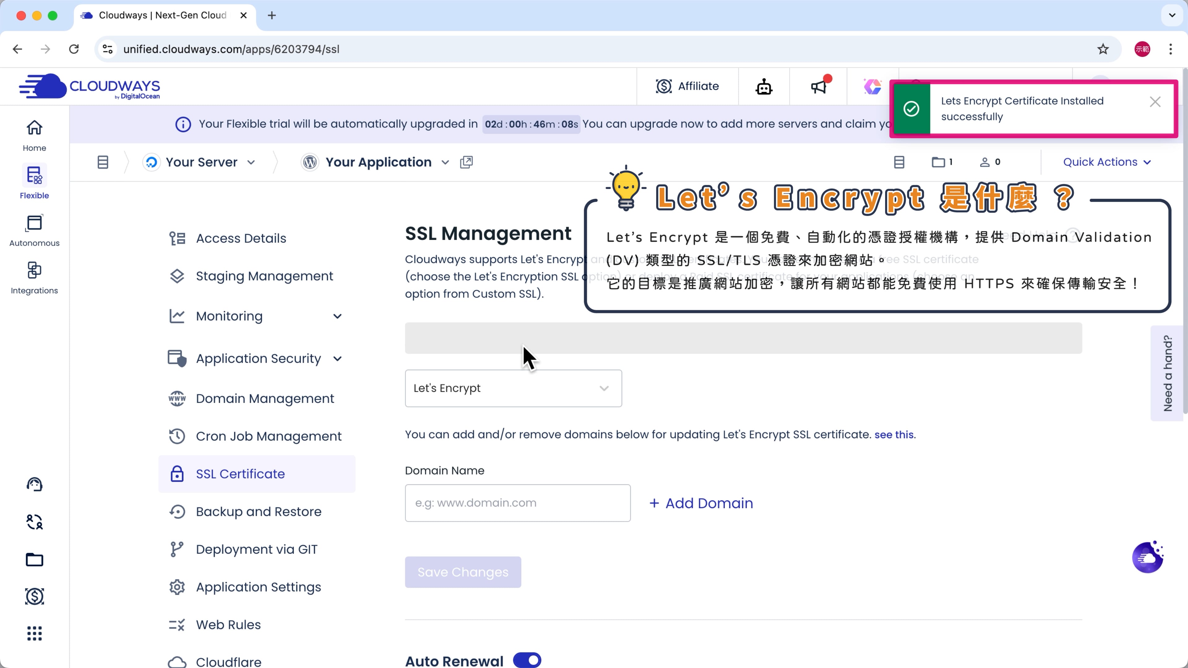 最後,我也會補充 Cloudways 後台的一些重點功能,讓你之後管理網站更容易上手。