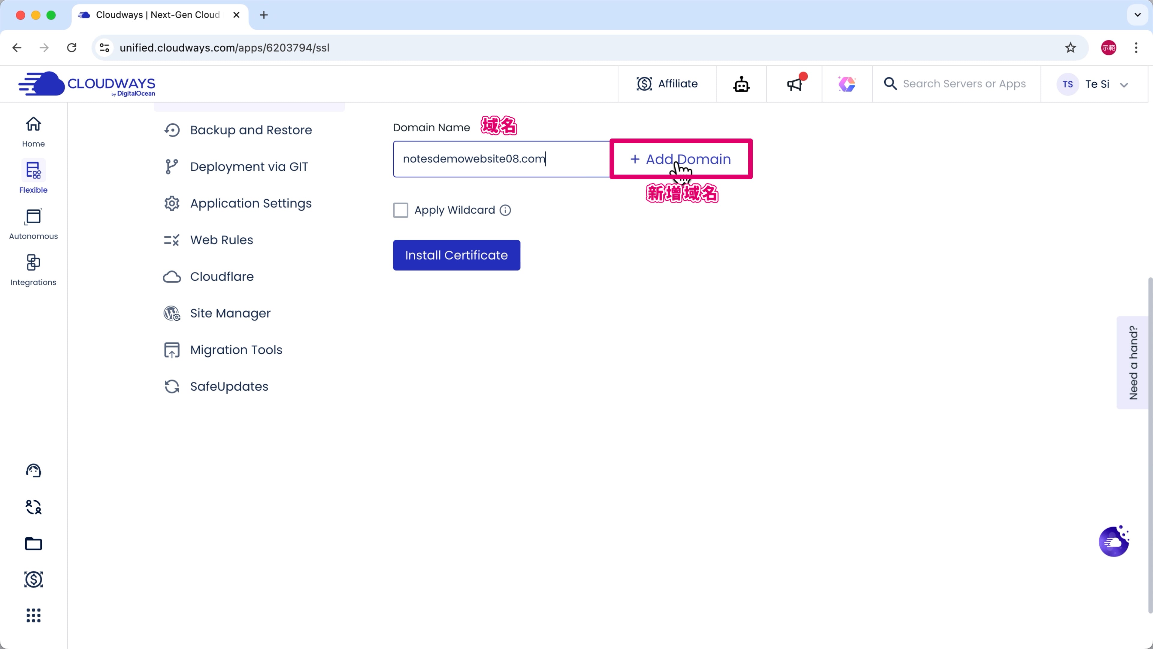 我也會在附圖內附上中文翻譯,只要你跟這篇筆記一步步操作,就能很快摸懂 Cloudways 的重點功能。