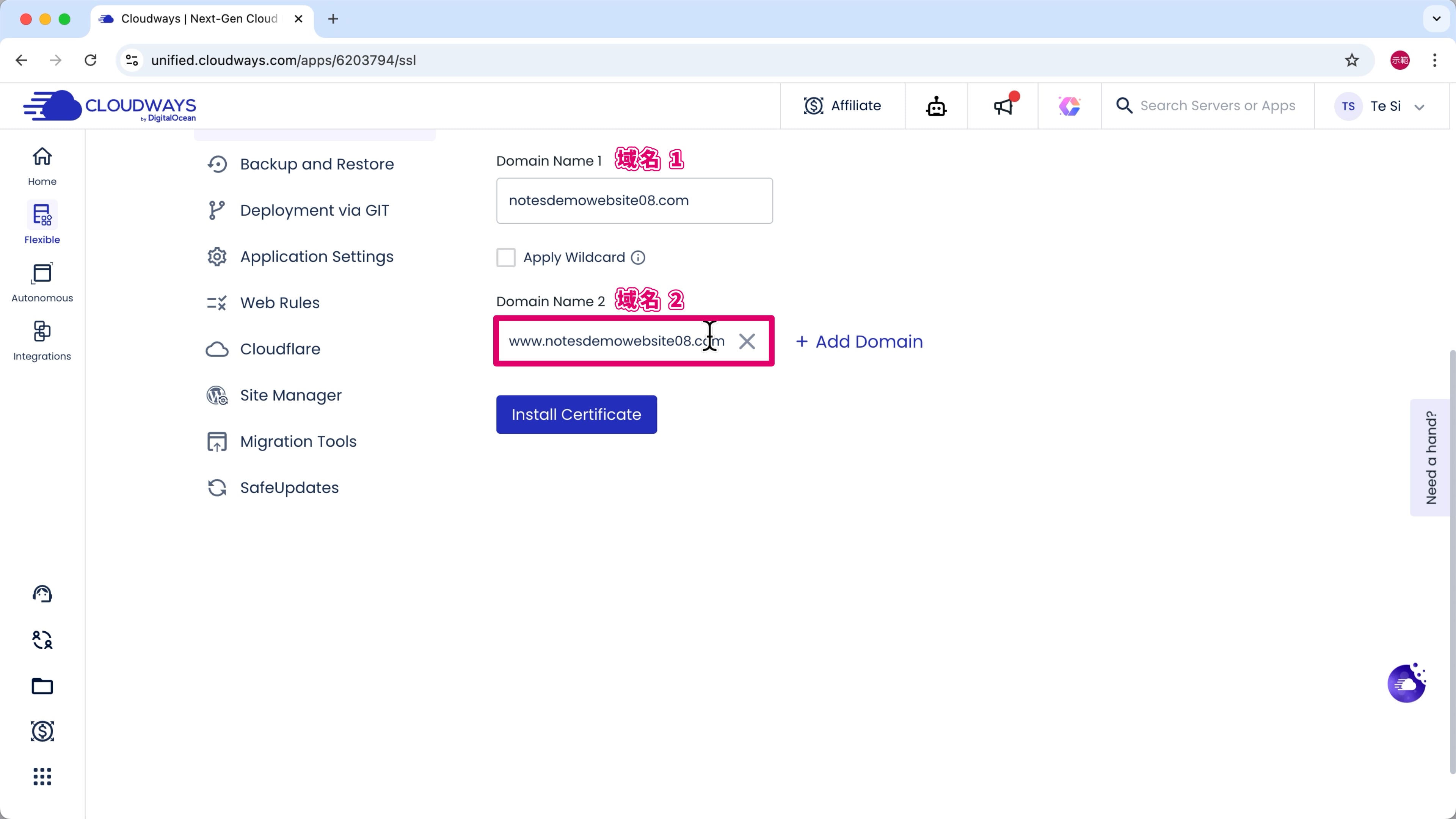 如果你忘了如何購買域名,或是不知道如何把新域名連到 Cloudways 主機,可以點擊以下連結複習怎麼做: