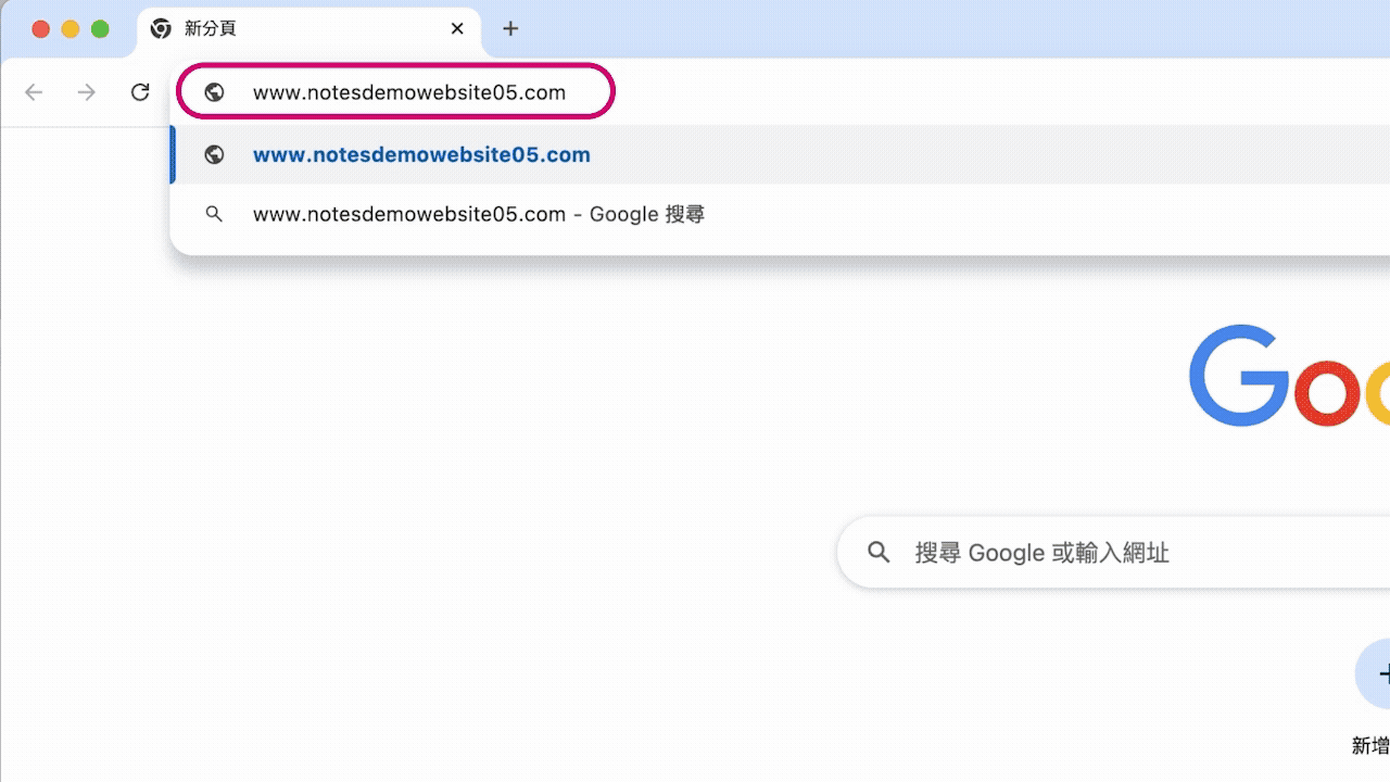 以這個示範網站為例,新增好 CNAME 紀錄後,當你在網址列輸入網站的子域名「www.notesdemowebsite05.com」,就能被導向到網站的主域名「notesdemowebsite05.com」了。