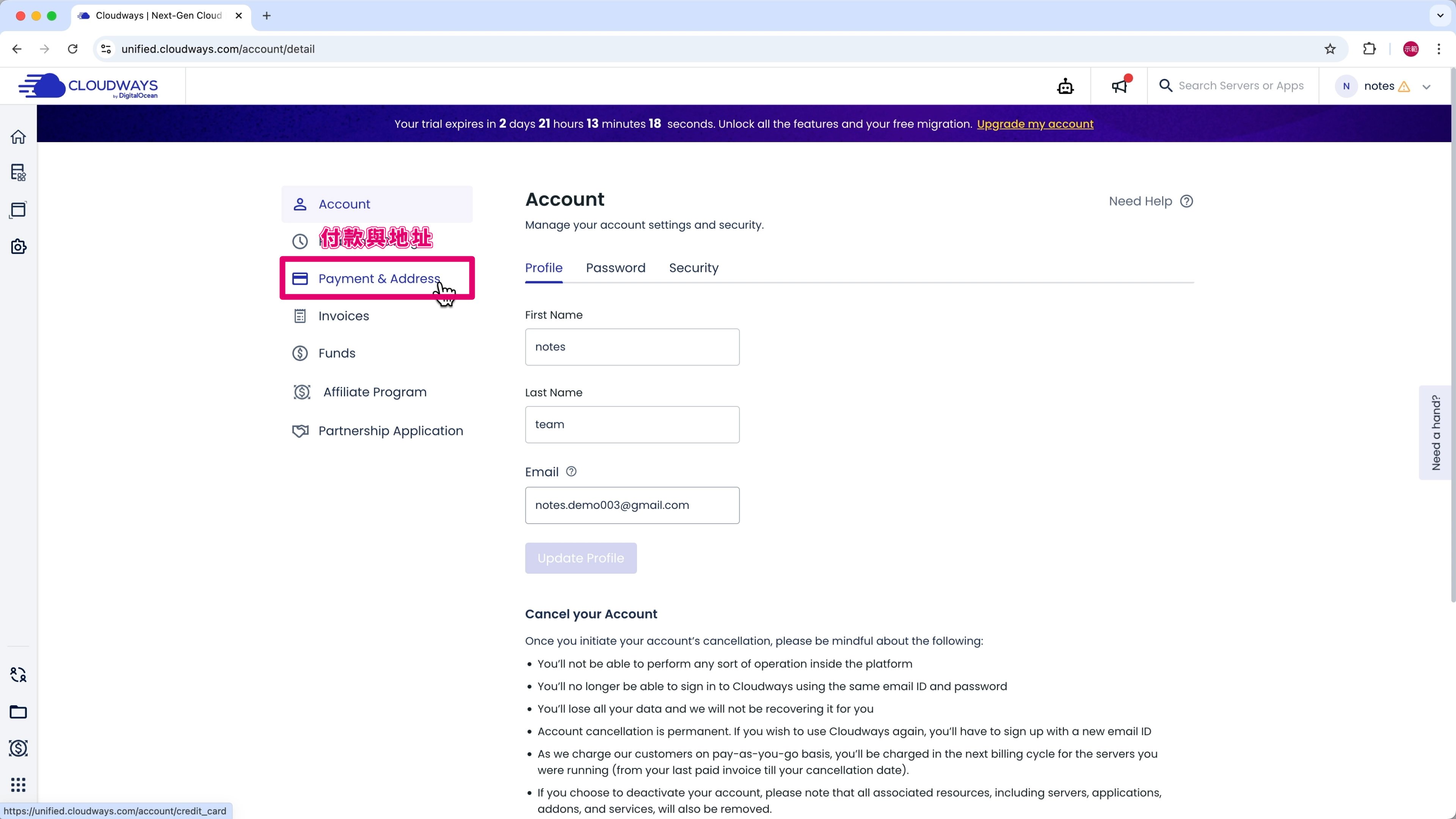 Cloudways 主機有提供 3 天免費試用,你可以先 免費註冊 一個帳戶。