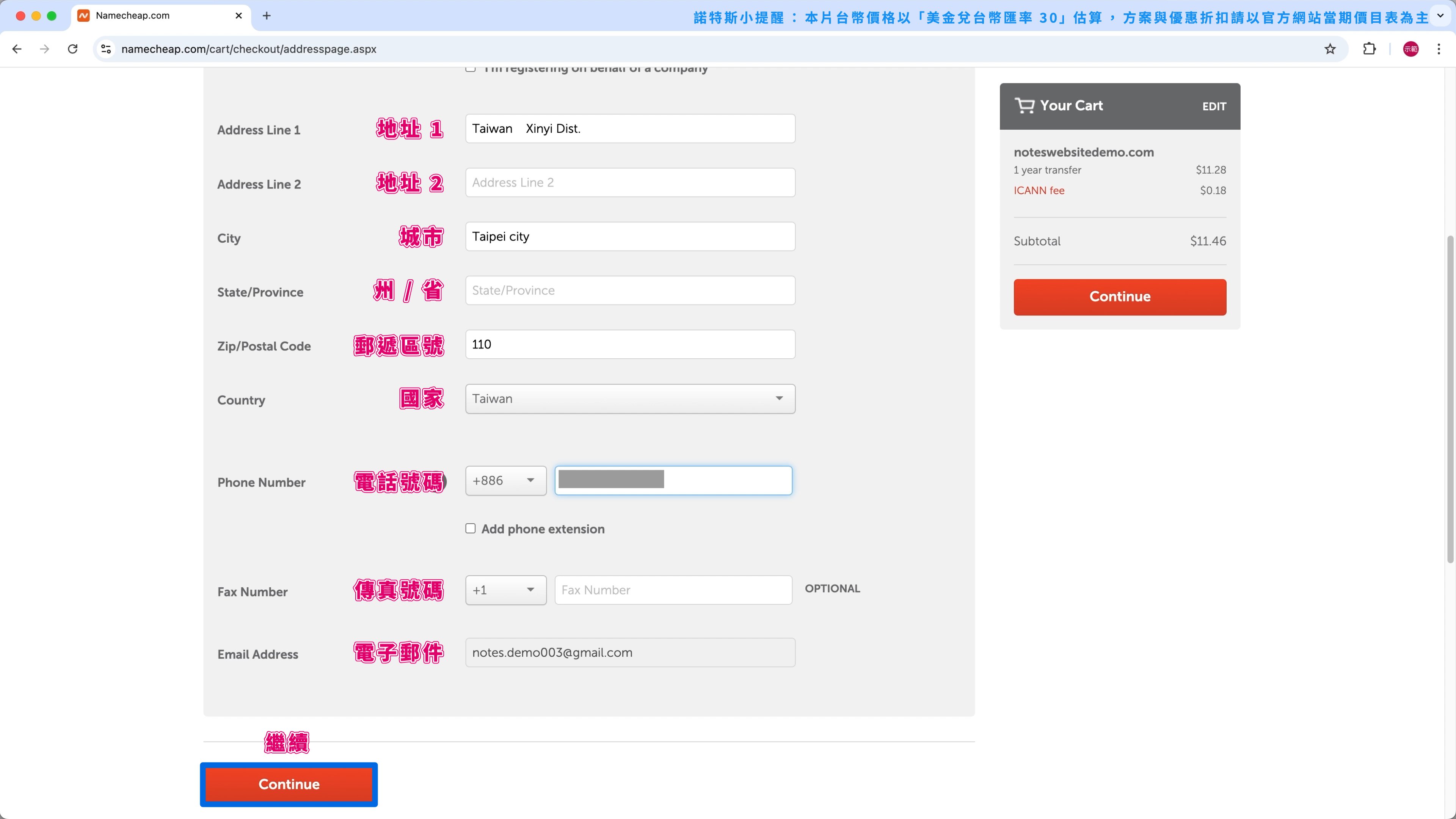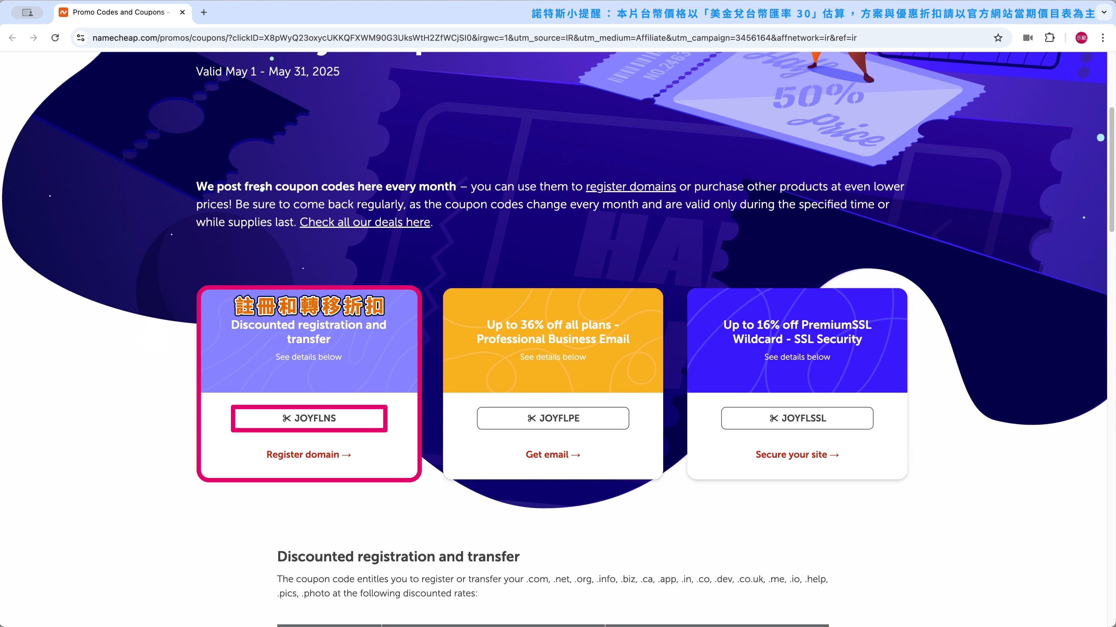 在搬家後第 1 年,域名費用可以省大約 $165 台幣。