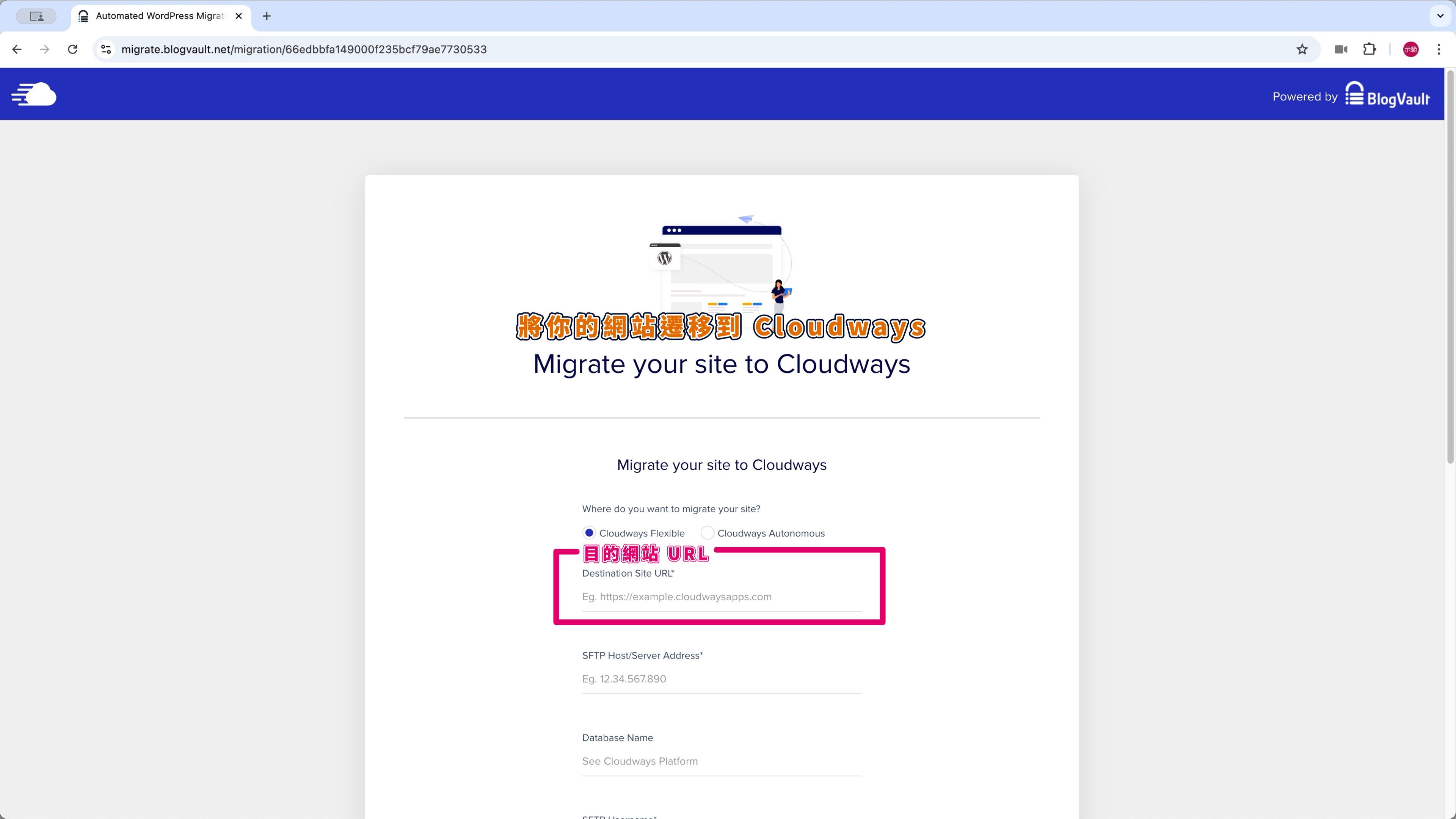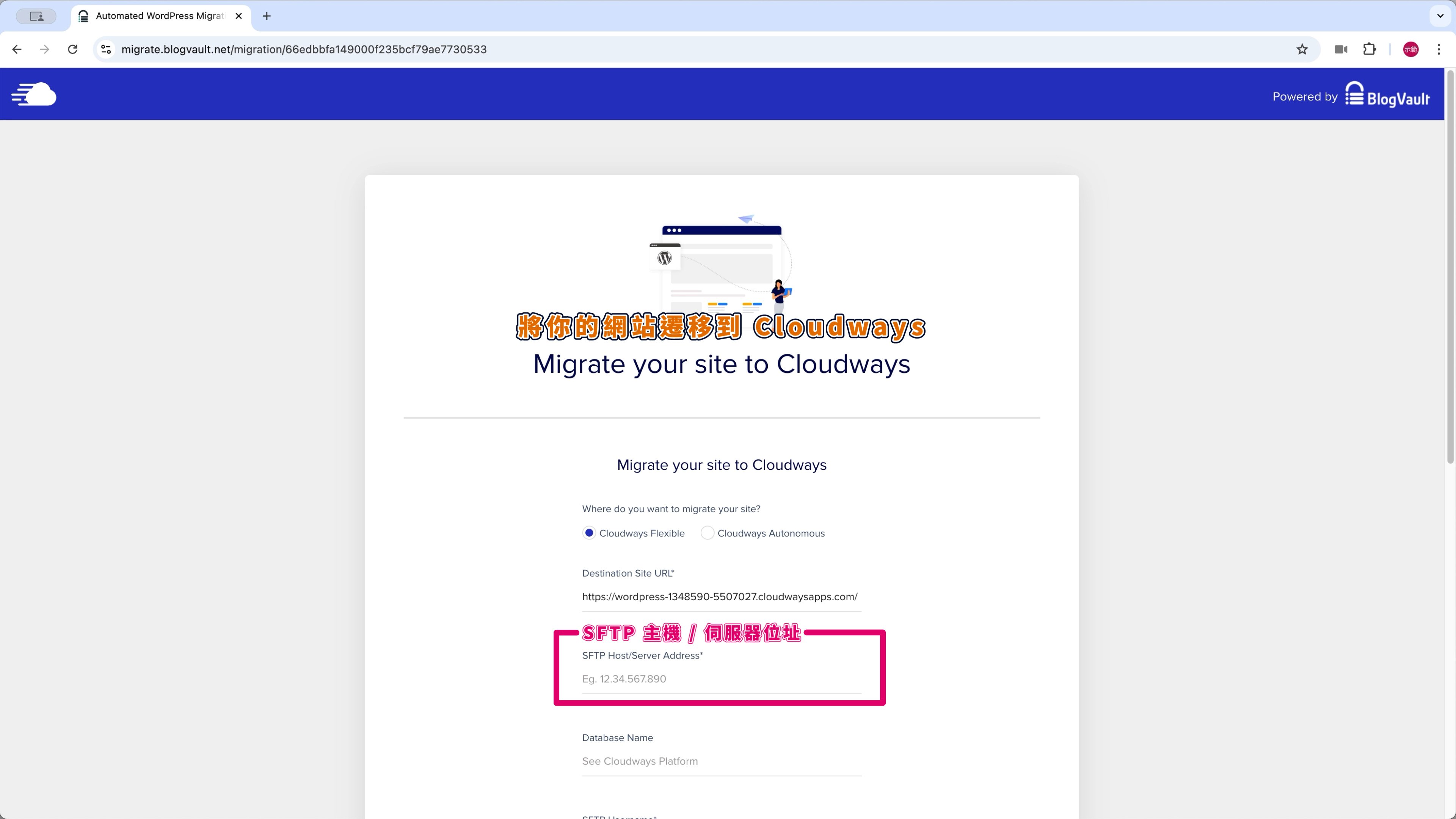 第 1 步,我會先搬主機,從舊網站利用 WordPress 搬家外掛,輕鬆地把資料從 Hostinger 主機一鍵搬到 Cloudways 主機。