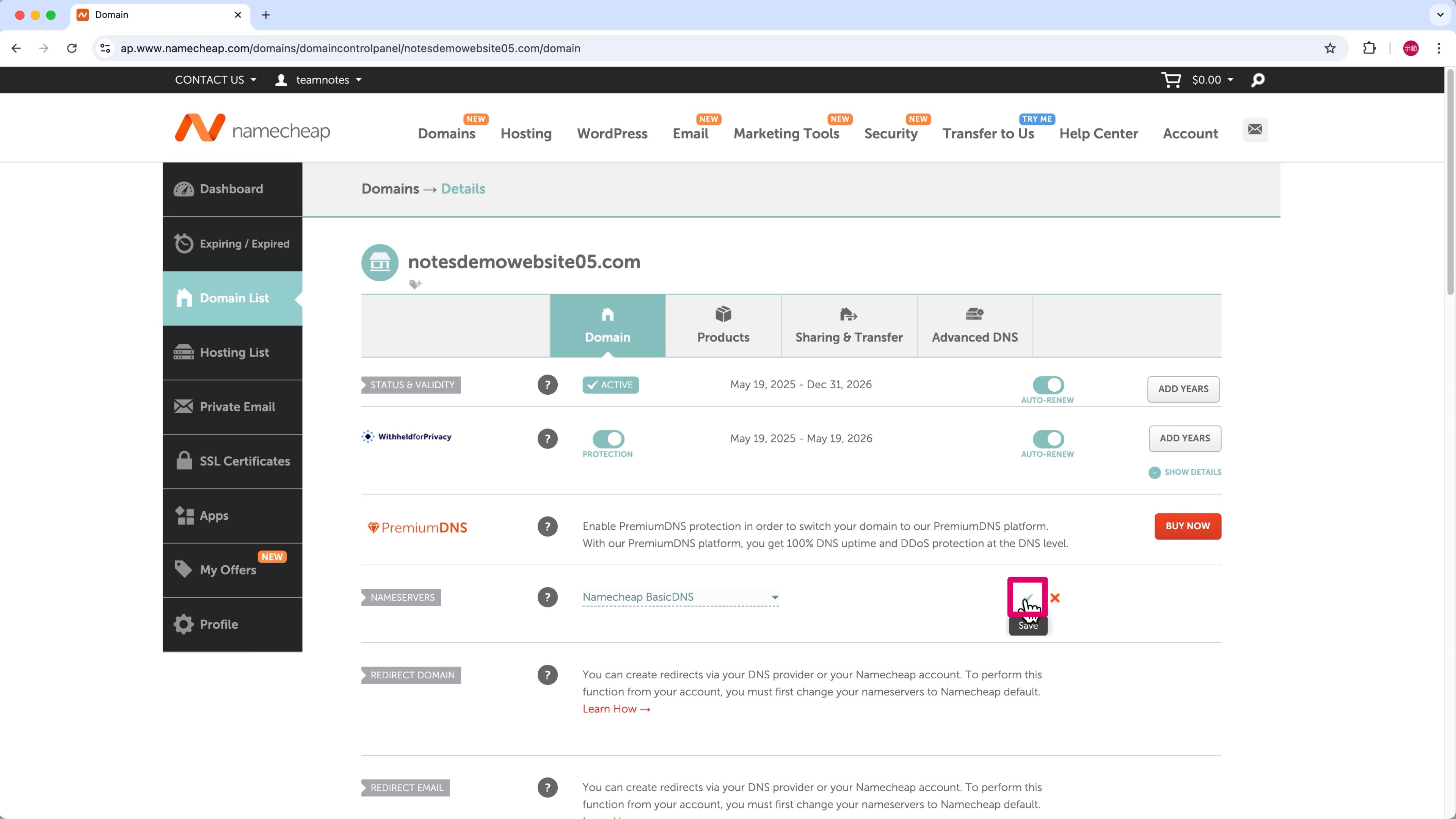 第 3 步,進行 DNS 設定,也就是把已經轉移到 Namecheap 的域名跟 Cloudways 主機連結起來,這時「臨時網站」才會變成「新網站」。
