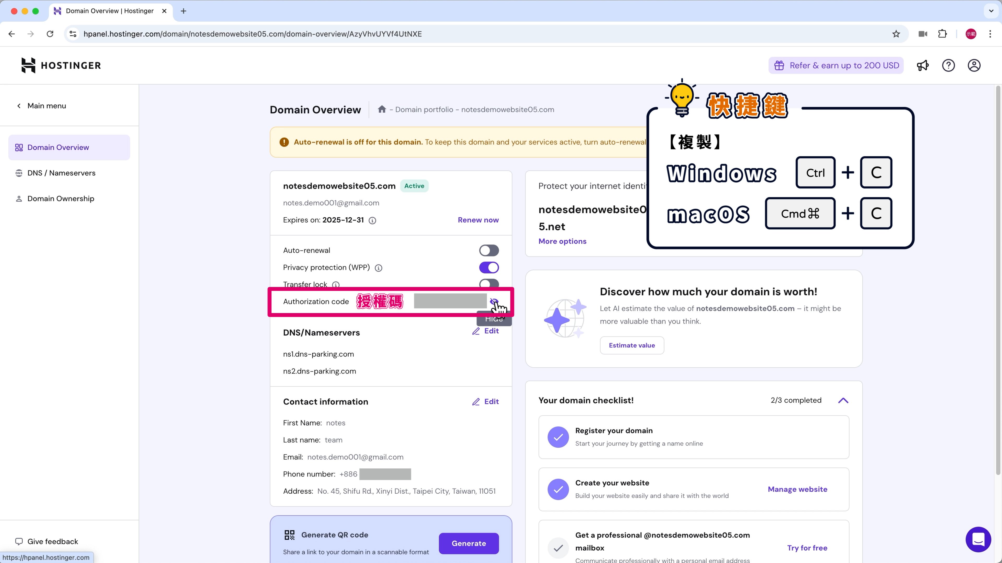 Hostinger 會在到期日的 27 天前自動續訂域名、14 天前自動續訂主機。