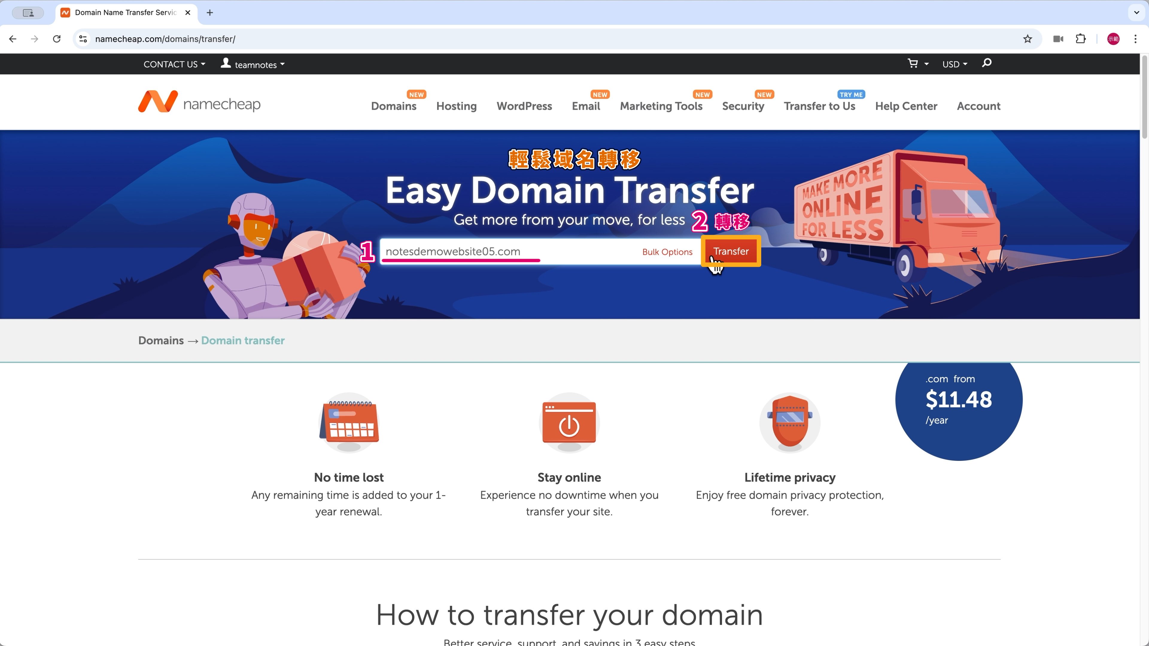 - How to transfer a domain name to Namecheap